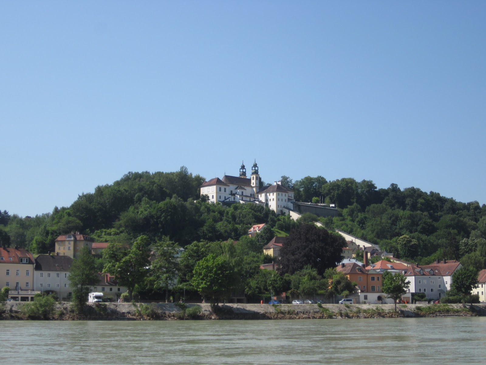 Between all the swinging, trampoline-ing, running, and kiddie-pool-swimming, I did have a morning free to go downtown with Lillian and her mom. Passau Center is beautiful, with brightly colored buildings (think Italian architecture). Passau is known as the Dreiflüssestadt, or Three Rivers City, because the Danube joins the Inn and Ilz Rivers at the tip of the Old Town peninsula. A few weeks ago, there was major flooding that destroyed buildings, swamped whole playgrounds, and reached street level; water levels rose higher this year than they did in the last Great Flood of 1462.